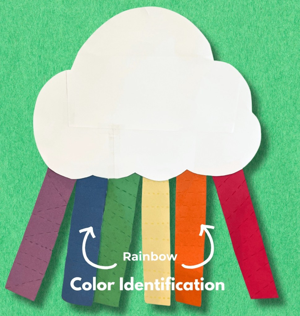 - Attach the Strips to the Cloud: Using glue or tape, attach the top of each colored strip to the back of the cloud. Arrange them in the order of the rainbow: red, orange, yellow, green, blue, indigo, and violet.