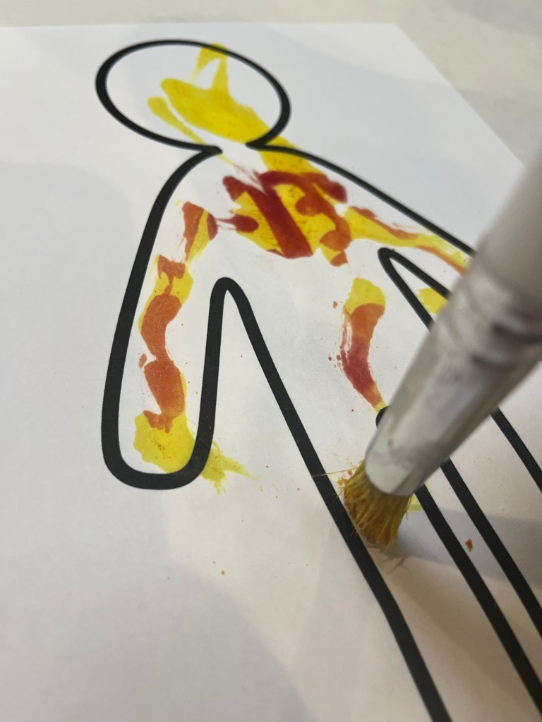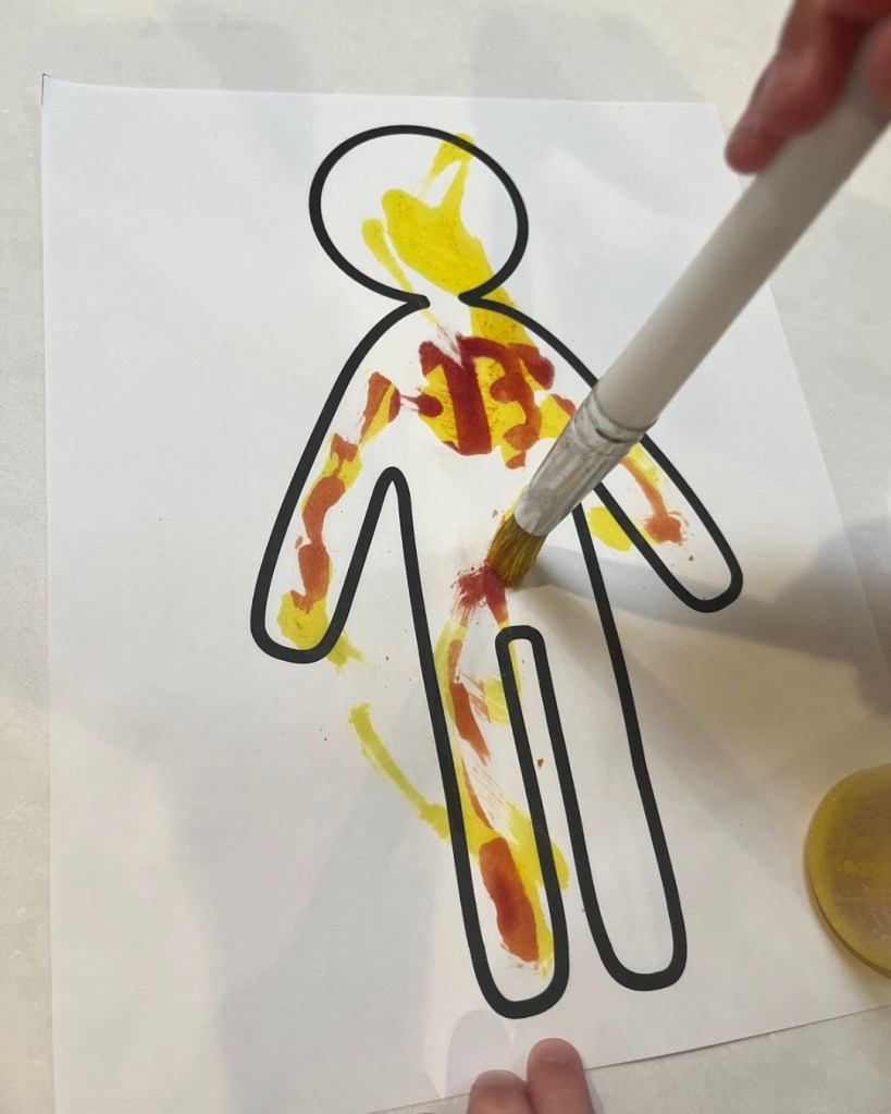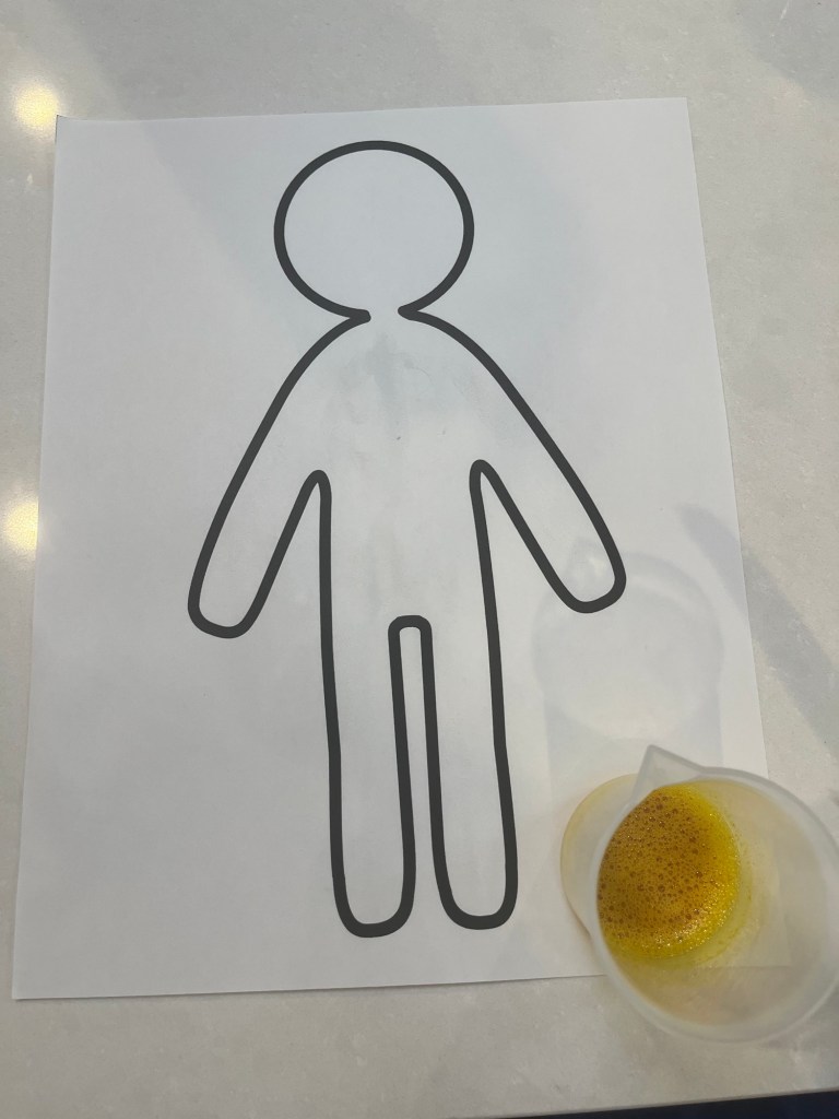 Have your child paint with the turmeric mixture over the body to reveal the hidden body systems you painted earlier.