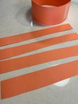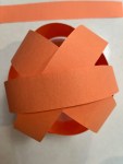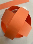 Next cut 4 strips horizontally from the 2nd sheet of orange paper. Now create an ‘x’ with two strips by attaching it to the base. Now using your remaining strips create another ‘x’ shape on top of the first.